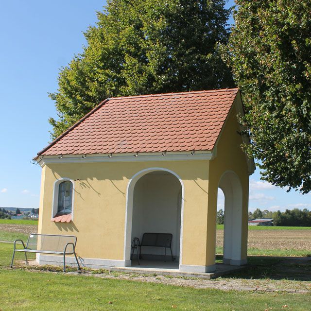 Das Gotteshaus entstand durch eine Stiftung durch die Burghagler Bäuerin Barbara Mayer, welche 1841 verstarb. In ihrem Testament setzte sie fest, dass ein Teil ihrer Hinterlassenschaft dazu verwendet werden solle, eine Feldkapelle auf einer Gemeindemarkung zu erbauen. Wahrscheinlich tat die gute Seele dies aus Wehmut und Frömmigkeit, erlebte sie doch, wie zur Zeit der Säkularistation eine Feldkapelle am Kapellesbrunnen auf staatlichem Befehl abgerissen werden musste.