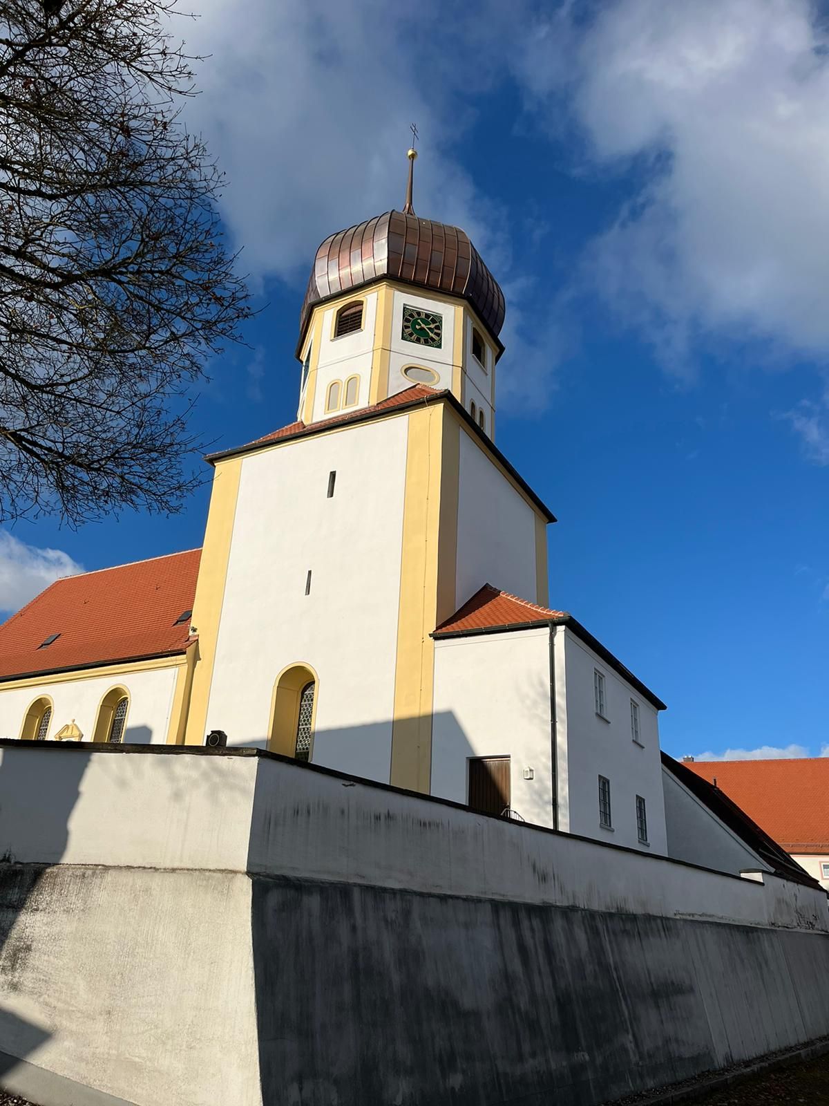 Das Geläut besteht aus drei Glocken, die 1952 erworben werden konnten. Das Kirchenschiff soll im Schwedenkrieg 1641völlig ausgebrannt sein. Im Jahre 1700 ließ Pfarrer und Dekan Georg Demharter die Kirche abbrechen und anschließend das Langhaus in der heutigen Form errichten.